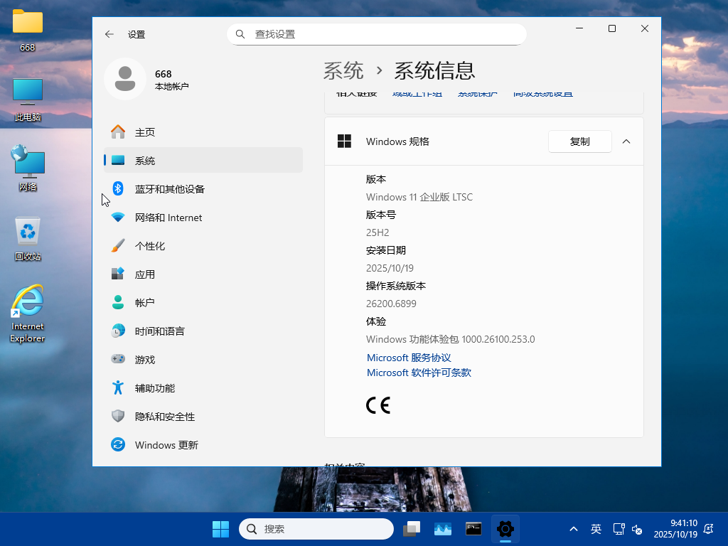 2025.10.19 更新 26200.6899 ltsc单映像,不含winre,不含edge。
